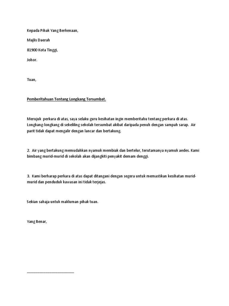 Contoh Surat Kiriman Rasmi Untuk Tidak Hadir Ke Sekolah Karangan Surat Sekolah
